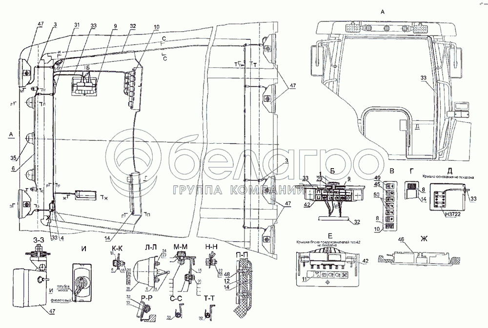 Каталог запасных частей к технике: МТЗ-2522. Установка фар рабочих