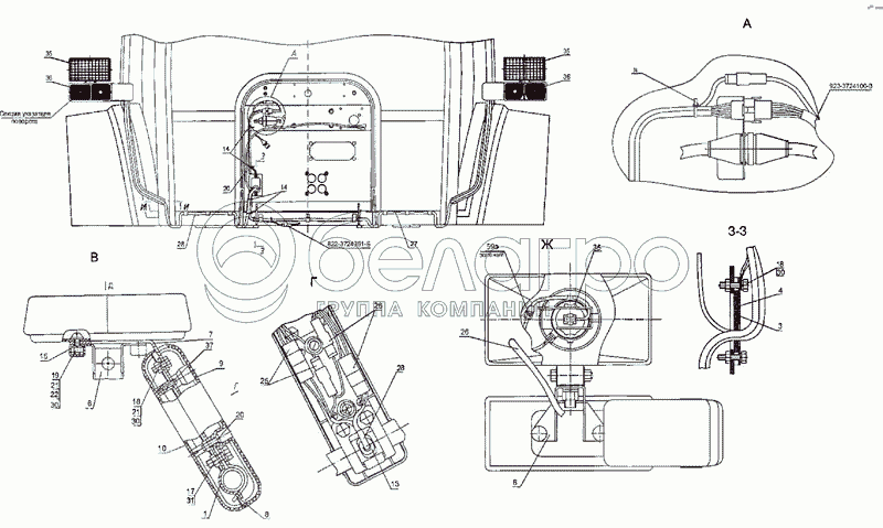 Каталог запасных частей к технике: МТЗ-2522. Установка фонарей передних