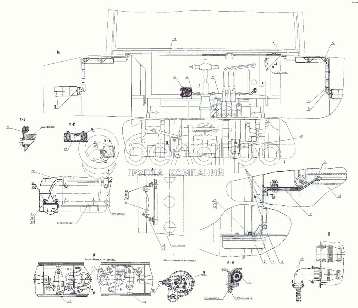 Каталог запасных частей к технике: МТЗ-2522. Установка фонарей задних