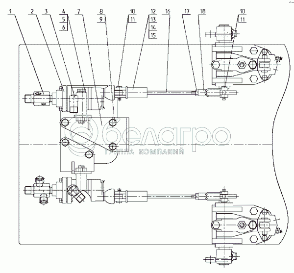Каталог запасных частей к технике: МТЗ-2522. Установка однопроводного крана тормозного