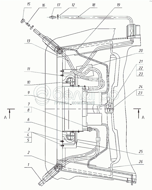 Каталог запасных частей к технике: МТЗ-2522. Установка отопителя-охладителя