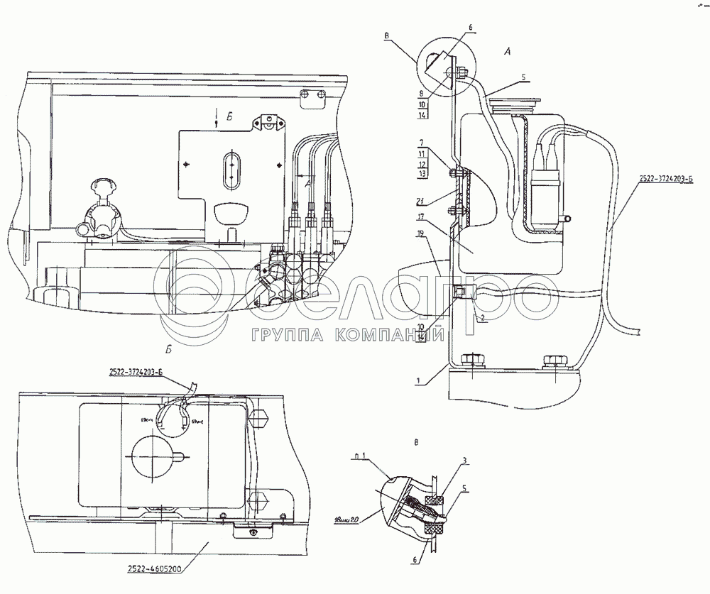 Каталог запасных частей к технике: МТЗ-2522. Установка стеклоомывателя