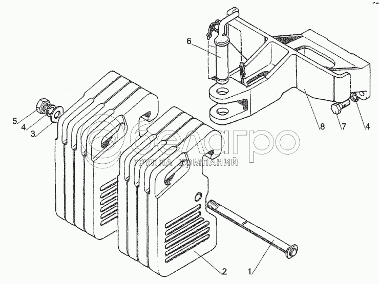 | 210-4235010 Груз дополнительный МТЗ-320 8х20кг комплект(кронштейн, струна и крепёж) передние, БЗТДиА |