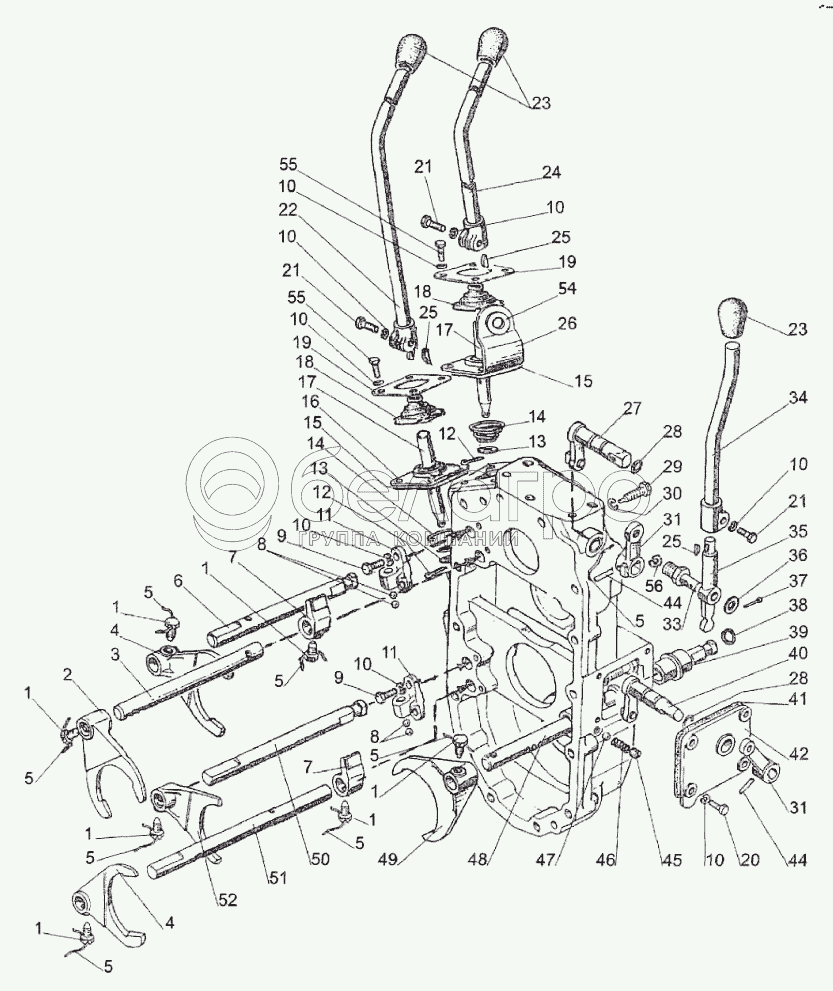 Каталог запасных частей к технике: МТЗ-310, 320, 321. Механизм управления коробкой передач