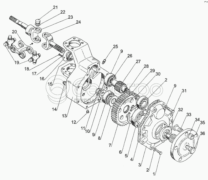 Каталог запасных частей к технике: МТЗ-310, 320, 321. Редуктор конечной передачи переднего ведущего