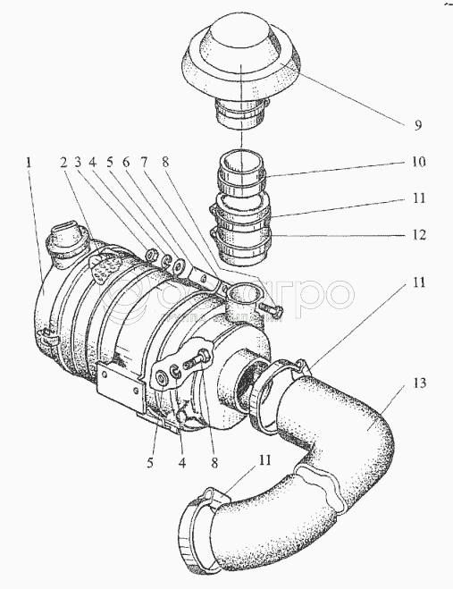 Каталог запасных частей к технике: МТЗ-310, 320, 321. Тракт воздухопроводящий