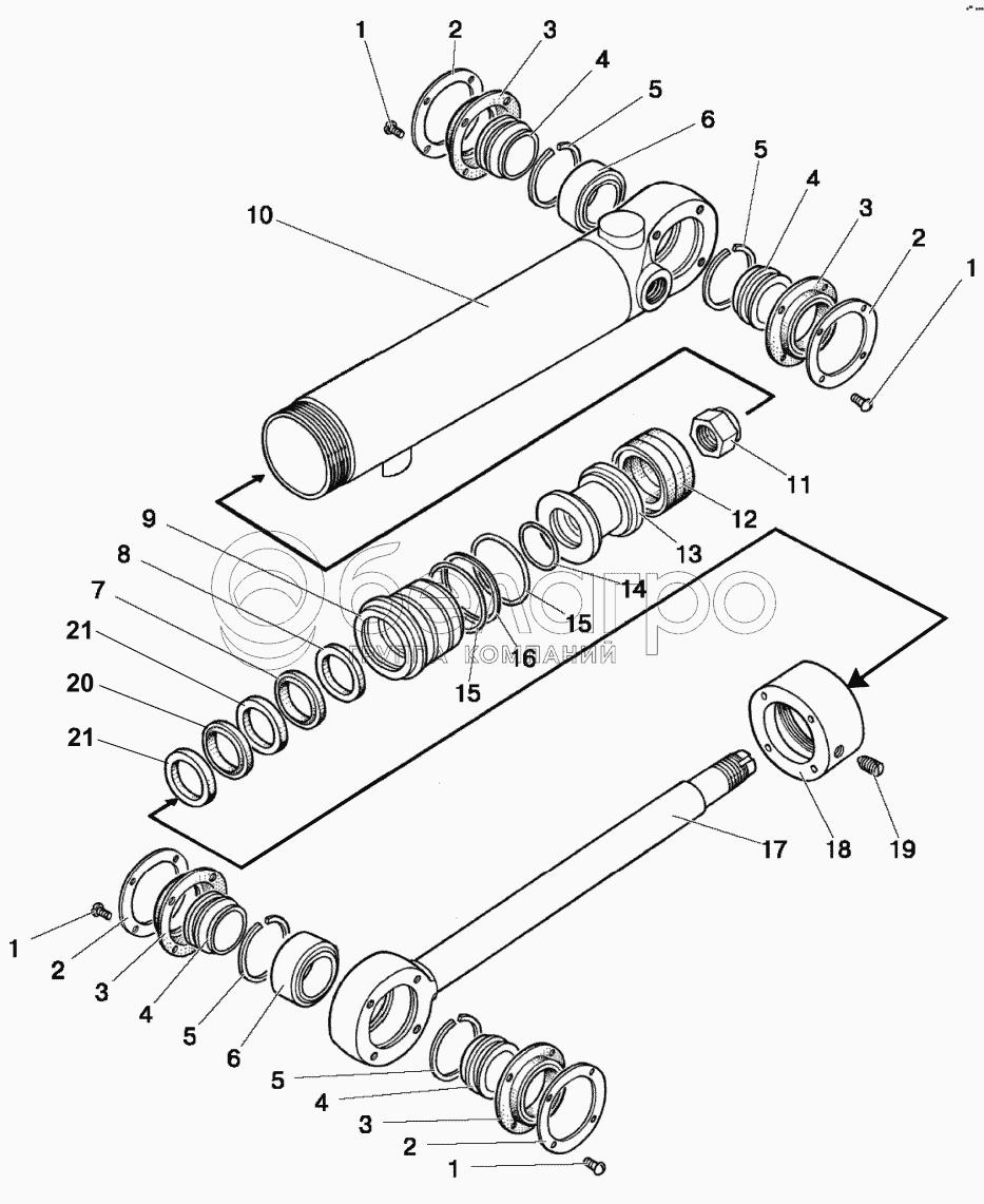 Каталог запасных частей к технике: МТЗ-3522. Гидроцилиндр Ц63 (63x30-250)