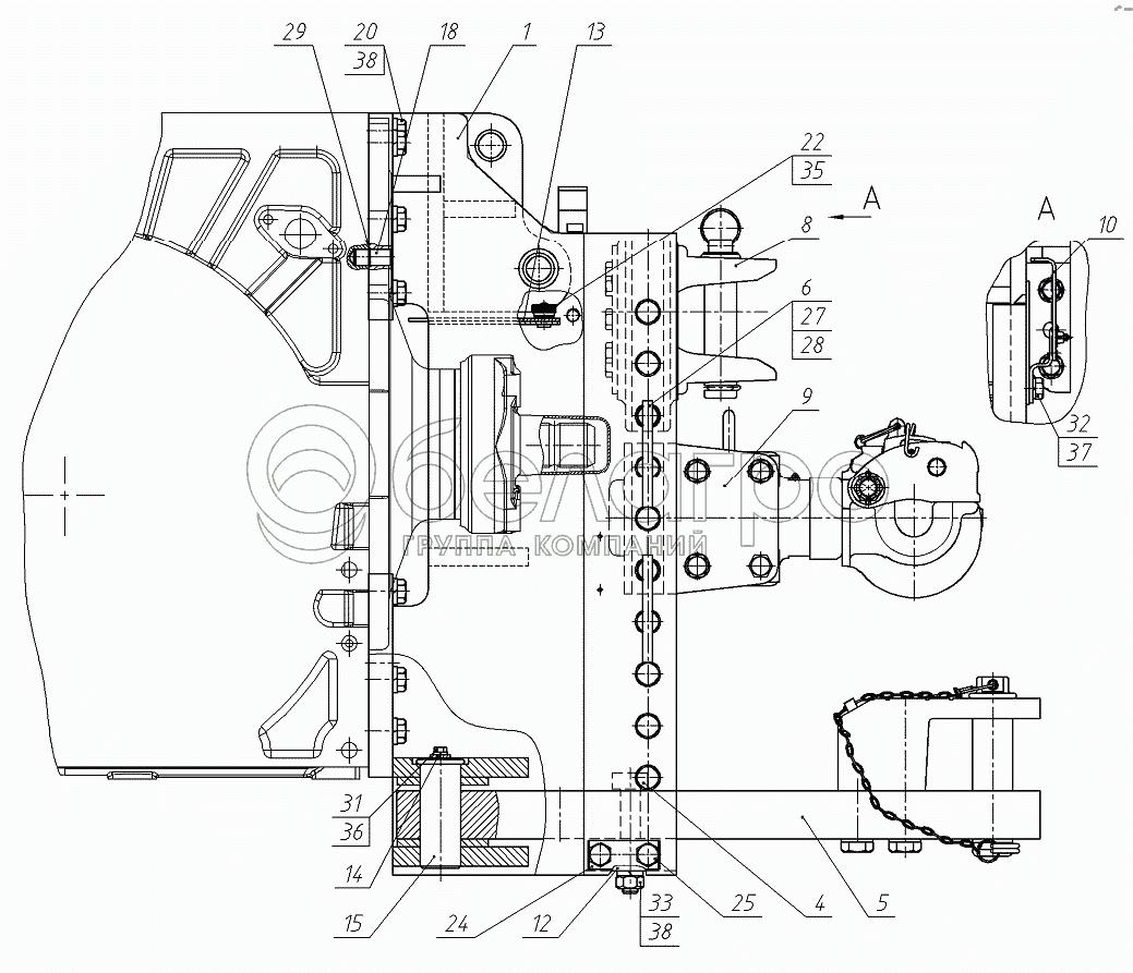 Каталог запасных частей к технике: МТЗ-3522. Тягово-сцепное устройство
