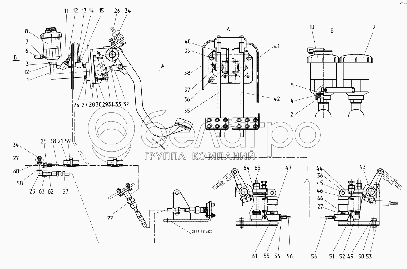 Каталог запасных частей к технике: МТЗ-3522. Управление тормозами