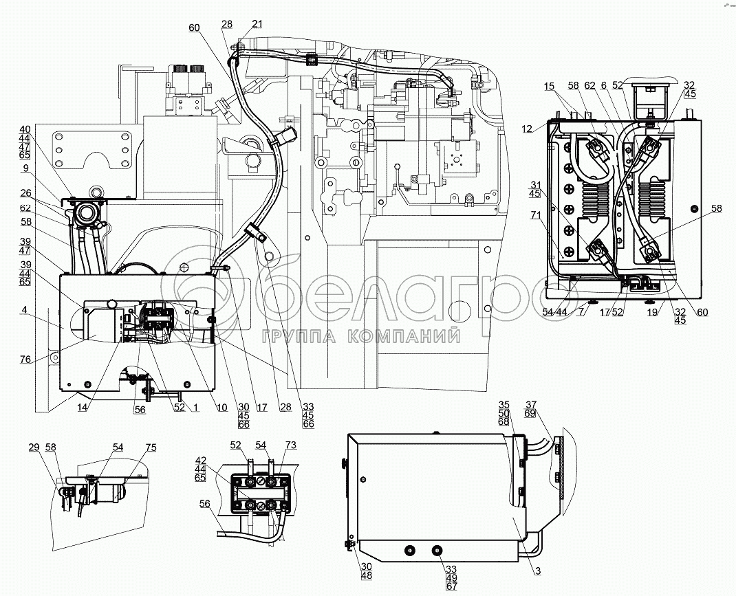 Каталог запасных частей к технике: МТЗ-3522. Установка батарей аккумуляторных