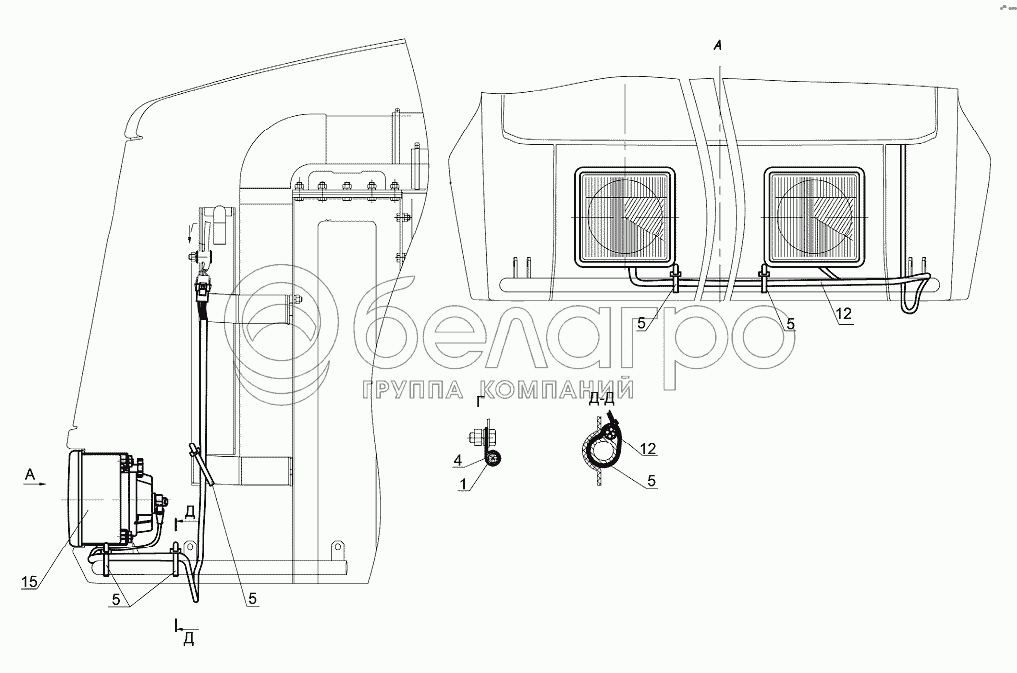 Каталог запасных частей к технике: МТЗ-3522. Установка фар дорожных