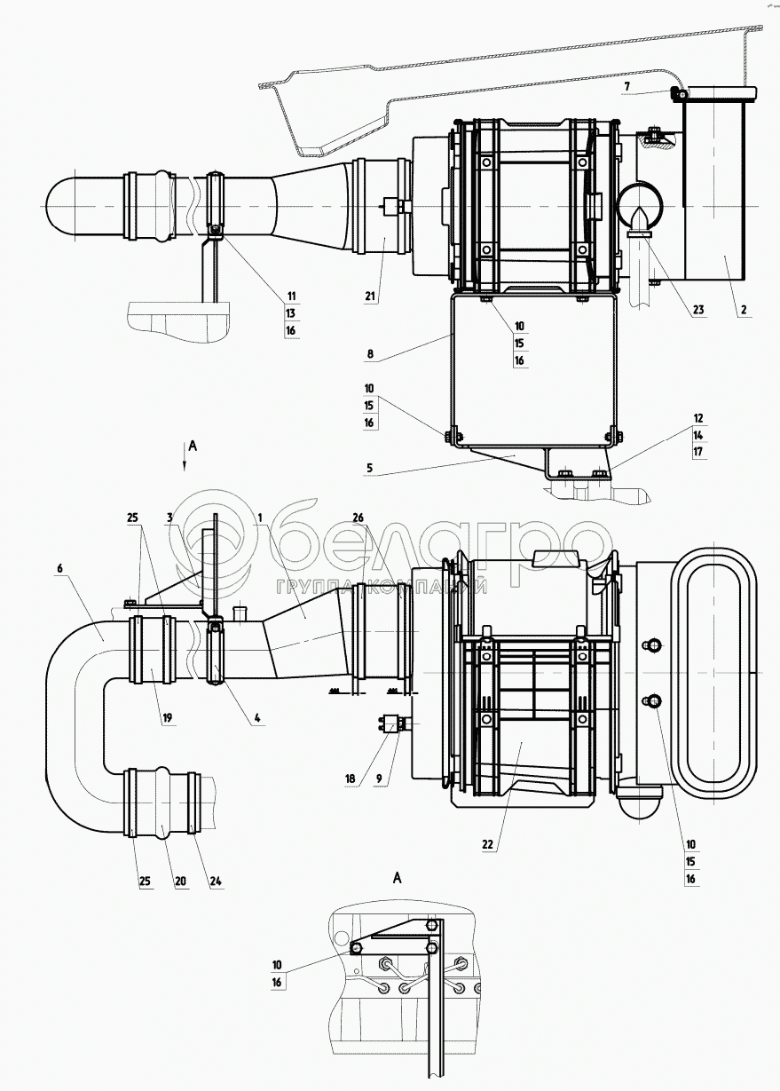 Каталог запасных частей к технике: МТЗ-3522. Установка воздухоочистителя