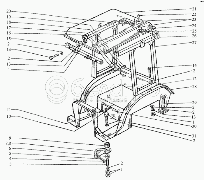 Каталог запасных частей к технике: МТЗ-510/512, 520/522. Кабина (тент-каркас)
