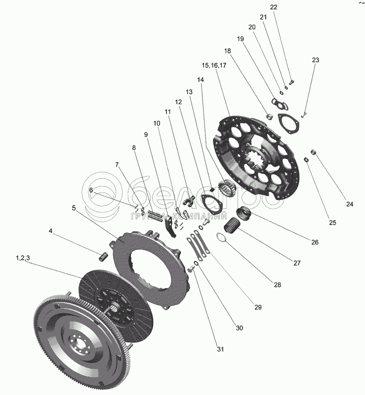 Каталог запасных частей к технике: МТЗ-510/512, 520/522. Установка сцепления 240-1005009