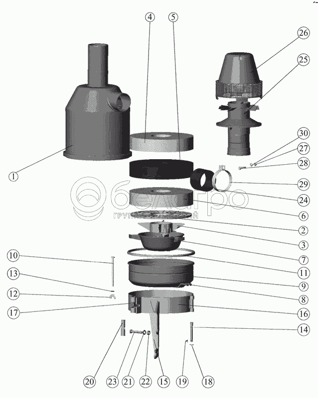 Каталог запасных частей к технике: МТЗ-510/512, 520/522. Установка воздухоочистителя
