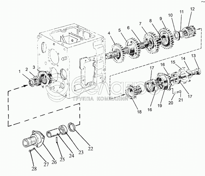 Каталог запасных частей к технике: МТЗ-510/512, 520/522. Вал внутренний. Вал промежуточный