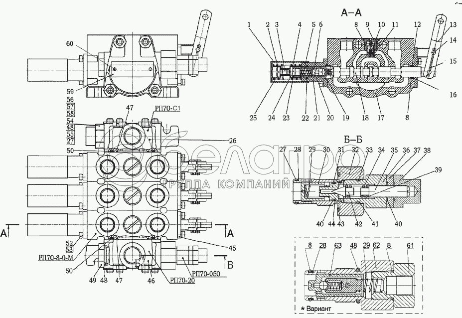 Каталог запасных частей к технике: МТЗ-570. Гидрораспределитель РП70