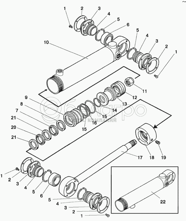Каталог запасных частей к технике: МТЗ-570. Гидроцилиндр Ц63
