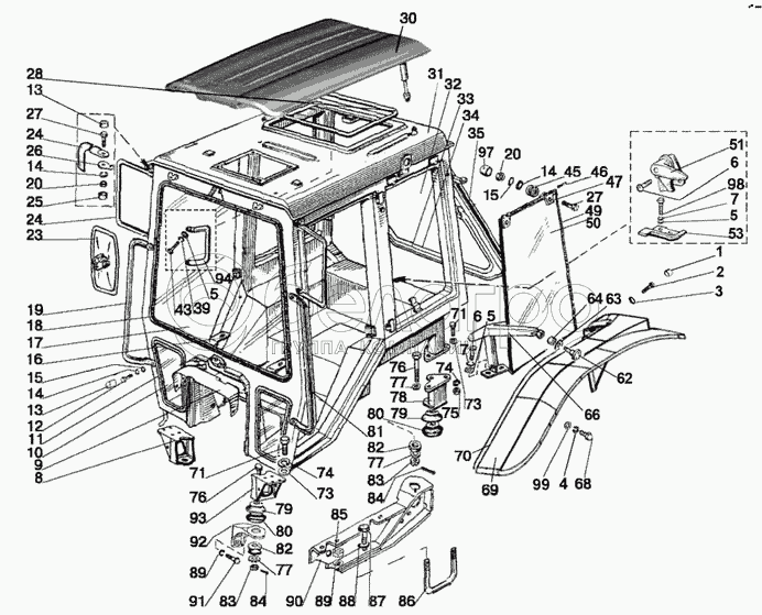 Каталог запасных частей к технике: МТЗ-570. Кабина трактора. Крылья задние