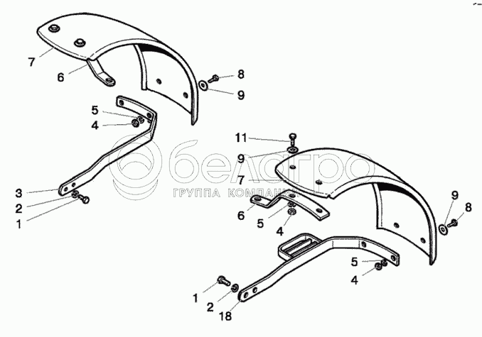 Каталог запасных частей к технике: МТЗ-570. Крылья передние (с передней осью)