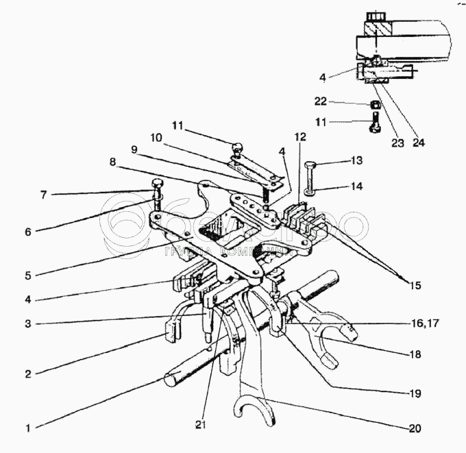 Каталог запасных частей к технике: МТЗ-570. Механизм управления синхронизированной КП, корпус вилок