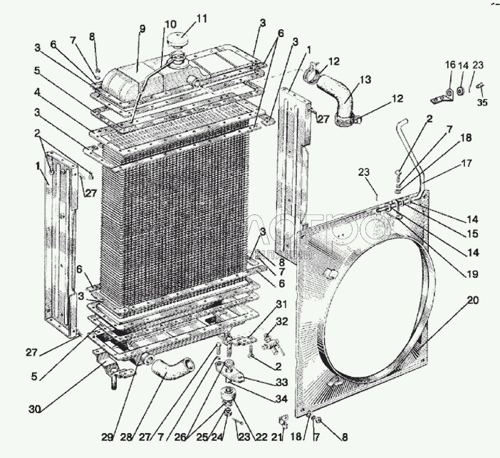 Каталог запасных частей к технике: МТЗ-570. Радиатор водяной. Подвеска радиатора водяного