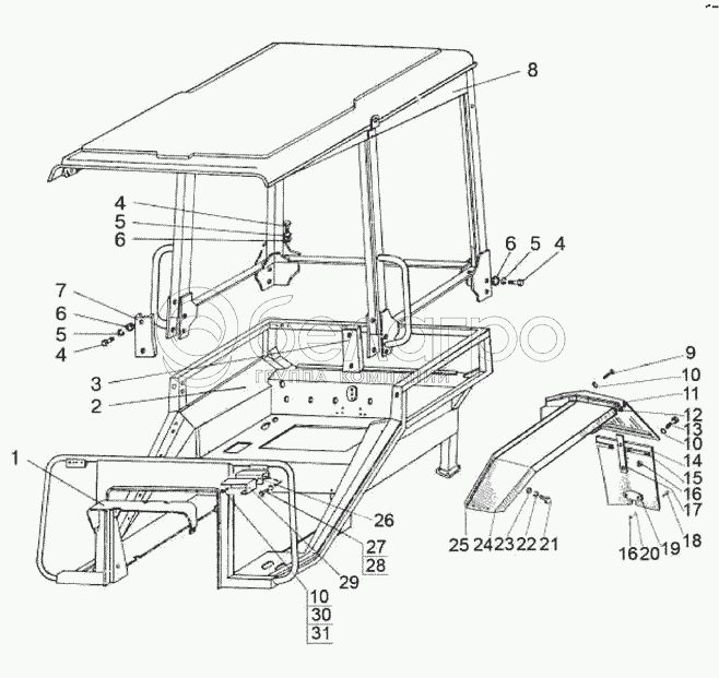 Каталог запасных частей к технике: МТЗ-570. Тент-каркас. Основание