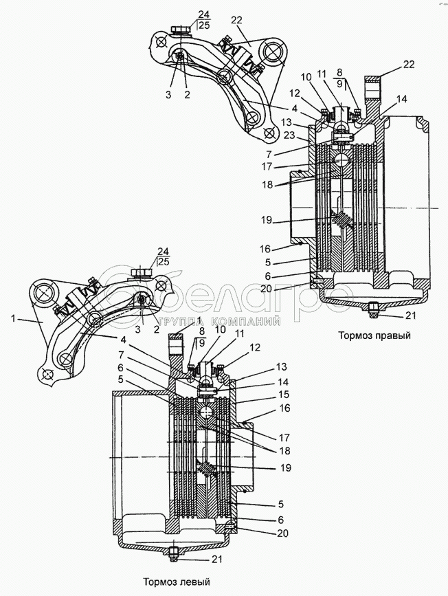 Каталог запасных частей к технике: МТЗ-570. Тормоза «мокрые» (левый/правый)