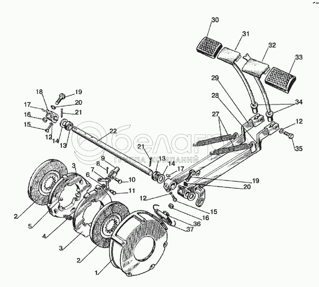 Каталог запасных частей к технике: МТЗ-570. Тормоза. Управление тормозами (сухого трения)
