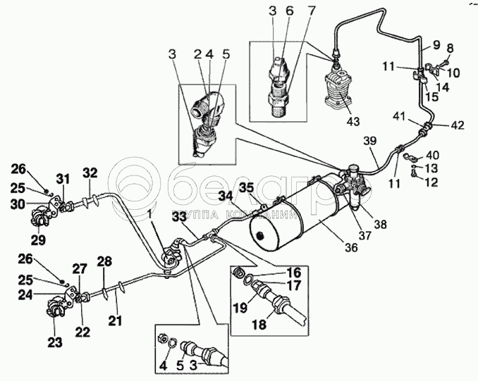 Каталог запасных частей к технике: МТЗ-570. Трубопроводы и арматура двухпроводного пневмопривода тормозов прицепа
