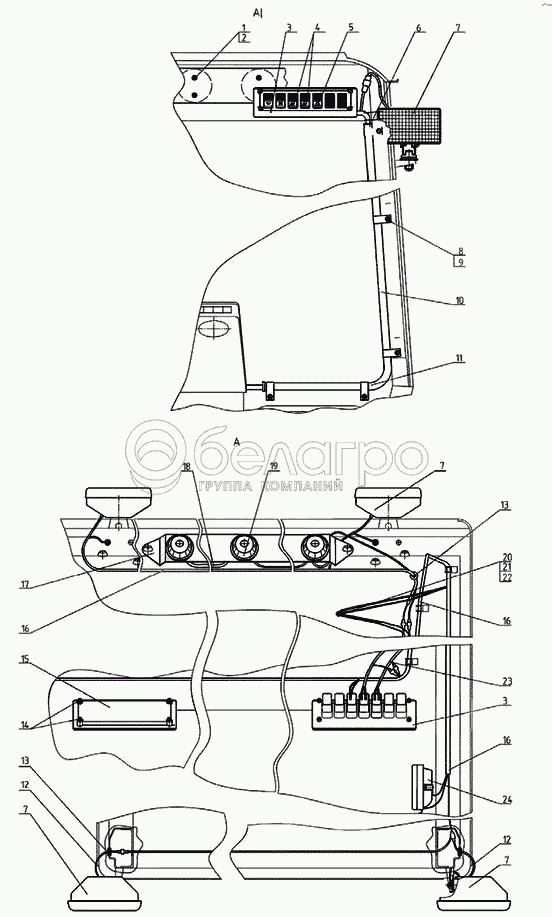 Каталог запасных частей к технике: МТЗ-570. Установка фар рабочих