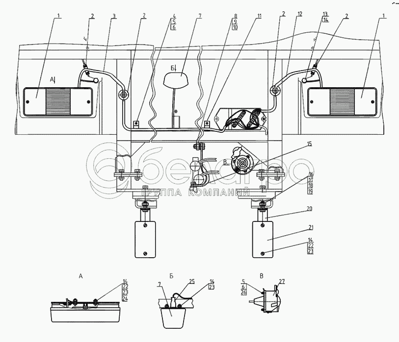 Каталог запасных частей к технике: МТЗ-570. Установка фонарей задних