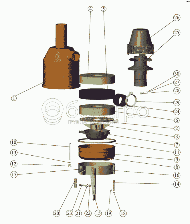 Каталог запасных частей к технике: МТЗ-570. Установка воздухоочистителя