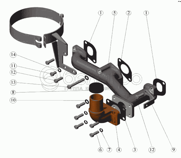 Каталог запасных частей к технике: МТЗ-570. Установка выпускного коллектора