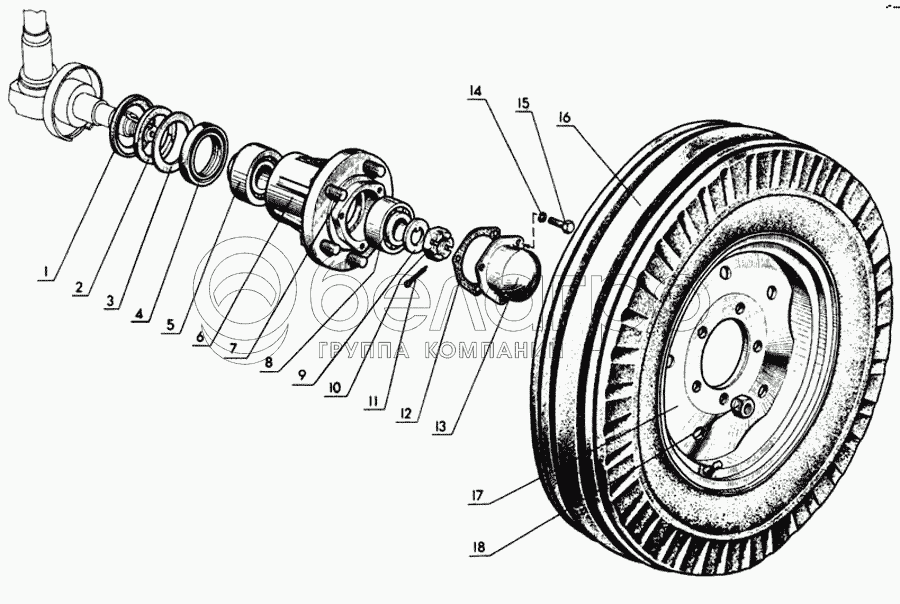 | 70-3103010 Ступица МТЗ колеса переднего, с подшипниками, с болтами и гайками, (А) |