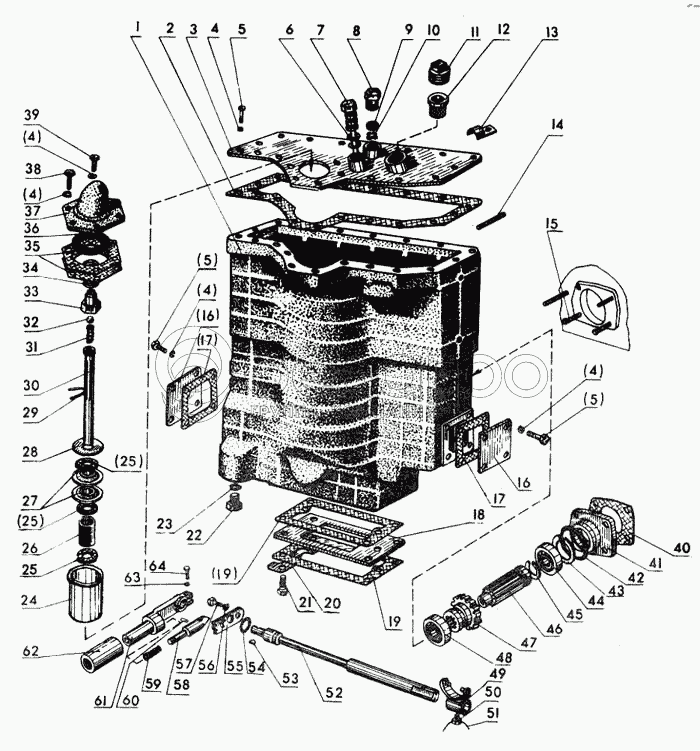 Каталог запасных частей к технике: МТЗ-80. Корпус гидроагрегатов, фильтр и привод гидронасоса