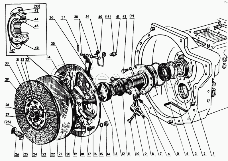 Каталог запасных частей к технике: МТЗ-80. Корпус сцепления (диски, отводка)