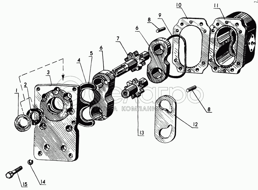Каталог запасных частей к технике: МТЗ-80. Насос шестеренный НШ10