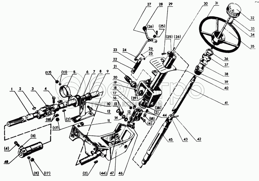 Каталог запасных частей к технике: МТЗ-80. Привод рулевого управления. Колесо рулевого управления