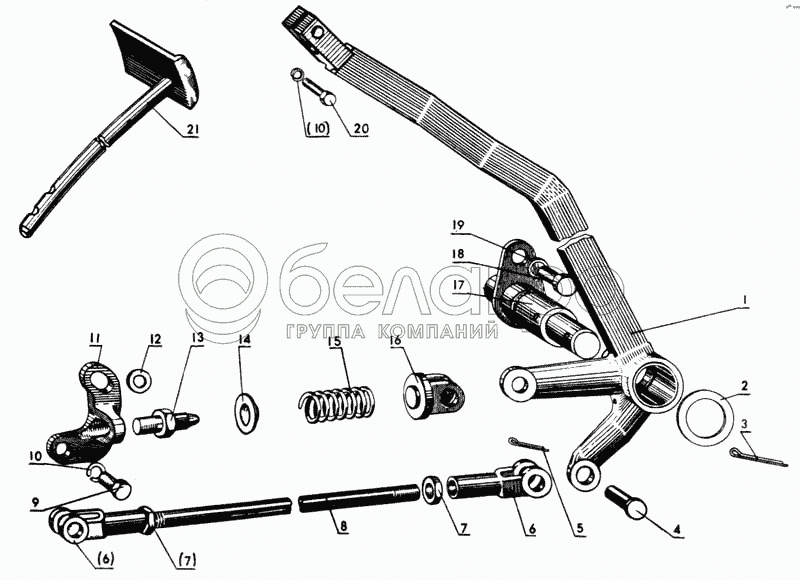 Каталог запасных частей к технике: МТЗ-80. Привод выключения сцепления