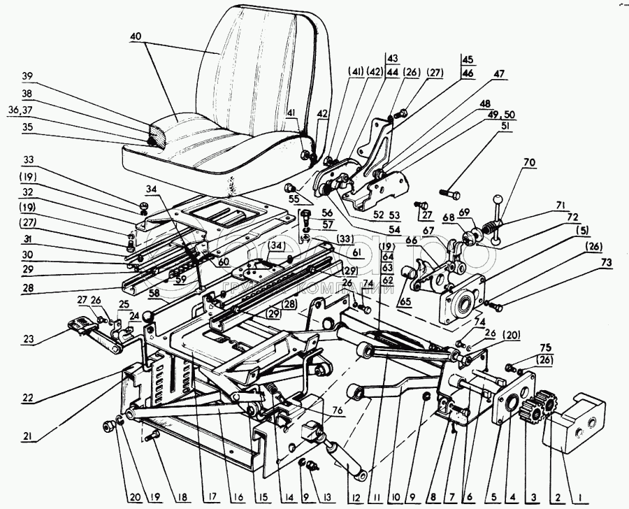 Каталог запасных частей к технике: МТЗ-80. Сиденье водителя