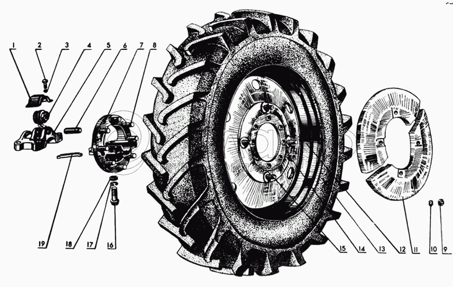 Каталог запасных частей к технике: МТЗ-80. Ступицы задних колес. Покрышки и камеры