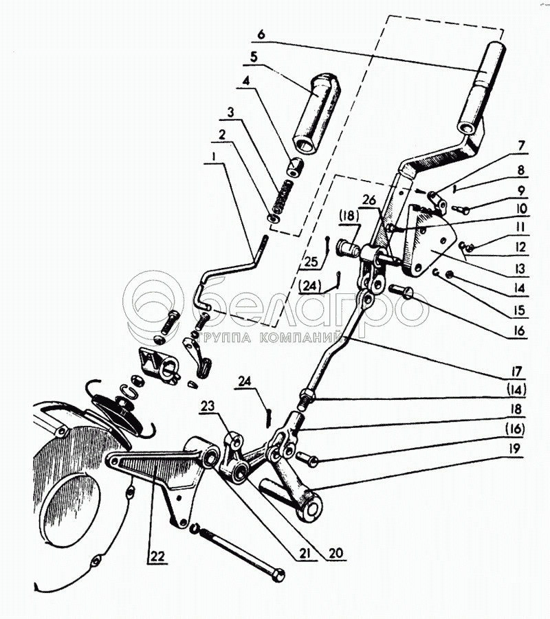 Каталог запасных частей к технике: МТЗ-80. Управление стояночно-запасным тормозом