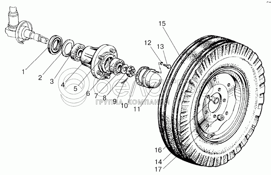 Каталог запасных частей к технике: МТЗ-80.1. Колеса передние направляющие. Ступицы передних колес.