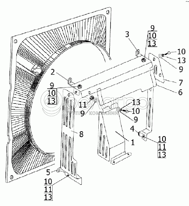 Каталог запасных частей к технике: МТЗ-80.1. Ограждение вентилятора