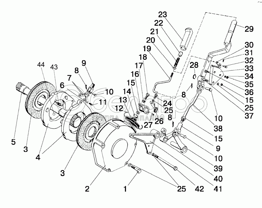 Каталог запасных частей к технике: МТЗ-80.1. Тормоз стояночный. Управление стояночным тормозом