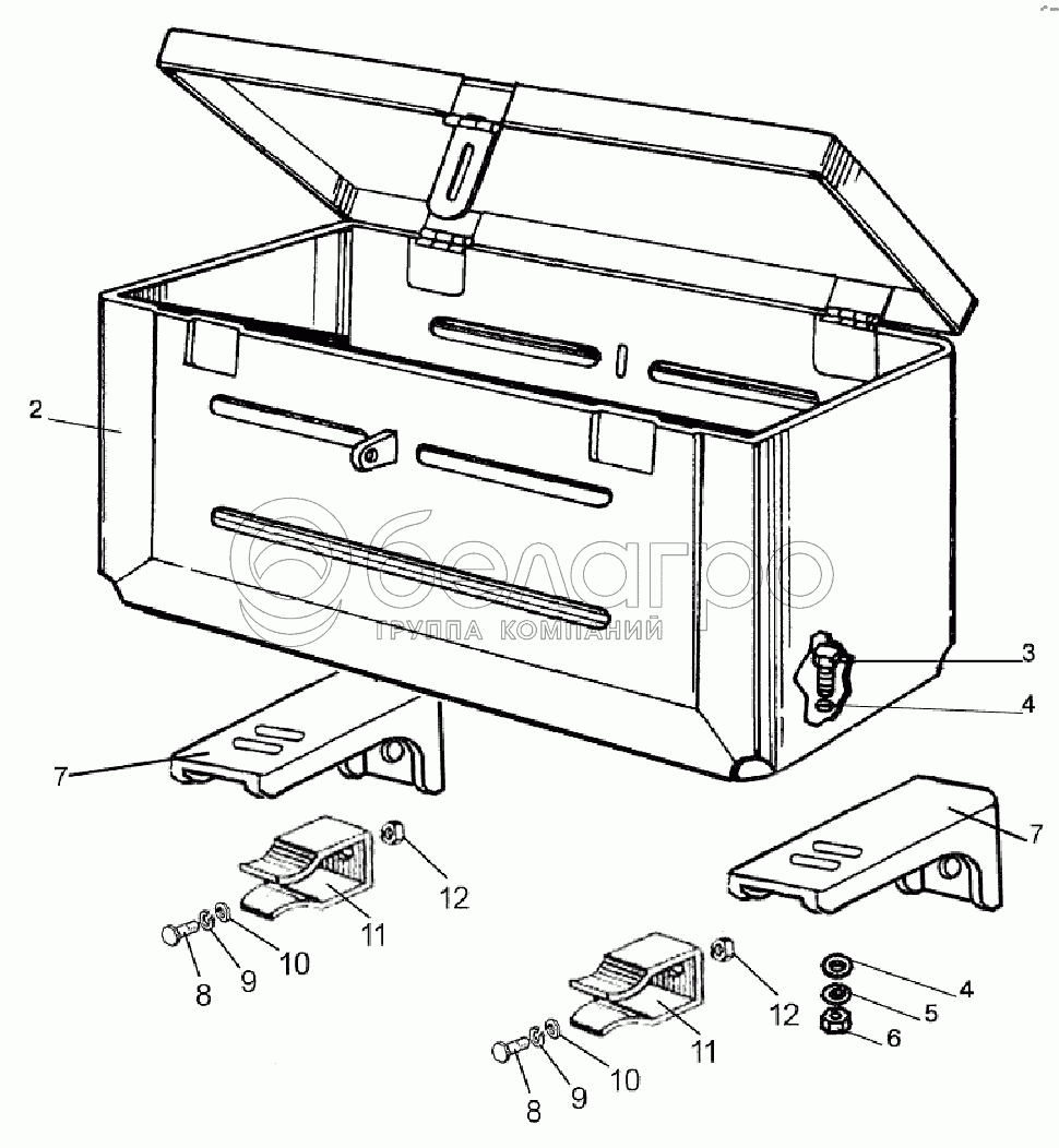 Каталог запасных частей к технике: МТЗ-80.1. Установка ящика инструментального