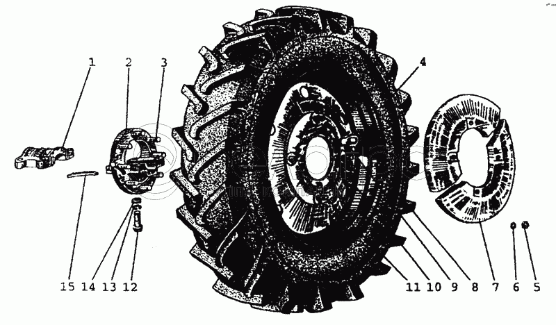 Каталог запасных частей к технике: МТЗ-80 (2002). 3104, 3107 Колеса задние. Ступицы задних колес