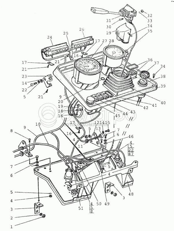 Каталог запасных частей к технике: МТЗ-80 (2002). 3805 Основание, приборы. Вариант 2