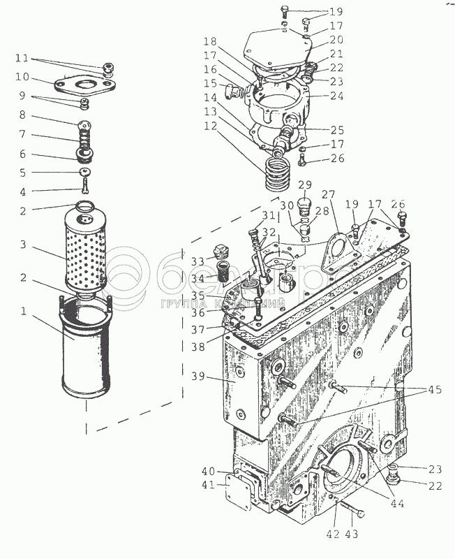 Каталог запасных частей к технике: МТЗ-80 (2002). 4608 Корпус гидроагрегатов и фильтр. Вариант